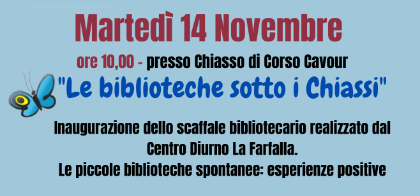 Martedì 14 novembre ore 10,00 inaugurazione dello scaffale bibliotecario realizzato dal Centro Diurno La Farfalla.